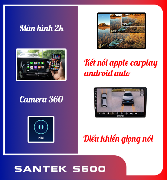 Android Box Santek 2K S600 tích hợp hệ điều hành Android tối ưu, cho phép bạn dễ dàng sử dụng YouTube, nghe nhạc, duyệt web, chạy bản đồ Vietmap & Google Maps trực tiếp trên màn hình ô tô. Với kết nối Wi-Fi và 4G mạnh mẽ cùng tính năng Apple CarPlay & Android Auto, thiết bị giúp bạn kết nối điện thoại với màn hình xe một cách nhanh chóng và tiện lợi. S600 là lựa chọn hoàn hảo nếu bạn muốn nâng cấp màn hình zin thành trung tâm giải trí và dẫn đường thông minh mà vẫn giữ nguyên thiết kế nguyên bản của xe.